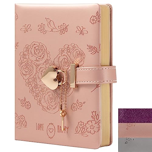 WEMATE Dagbok med lås, A5 PU-läderdagbok med lås 240 sidor, vintage lås-dagbok med penna och presentask, låsbar dagbok för kvinnor och män, 20 x 13 cm rosa