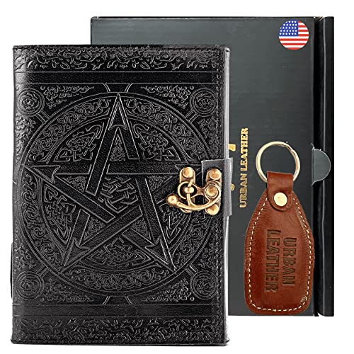 Vintage läderbunden dagbok anteckningsbok juldagbok för män kvinnor, handgjord svart bok med skuggor pentagram stjärna grimoire, ritning skiss bok trolla bok resa gåva skriva anteckningsbok, ofodrad