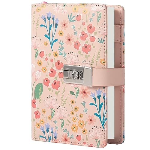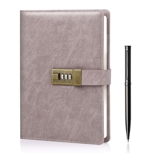 PRITOK Dagbok med lås: 21,6 x 15 cm tjocka anteckningsböcker för lösenord, PU-läderdagbok, A5-påfyllningsbar personlig dagbok, dagbok med kombinationslås för kvinnor, flickor, pojkar, tonåringar, barn