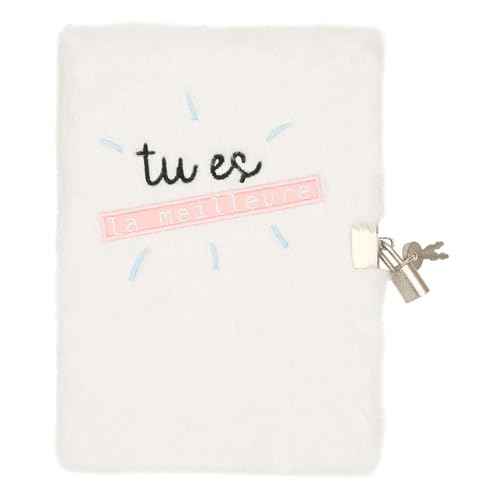 Draeger Paris - Vit plysch intim dagbok du är den bästa- dagbok med hänglås och nycklar för hennes personliga hemligheter - present till flicka, dam