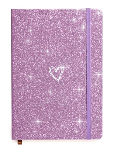 ZTUOK Glitter A5 anteckningsbok, linjerad journal A5 anteckningsblock för flickor kvinnor, söt bling-dagbok med hjärtformad högskola linjerad inbunden anteckningsbok för arbete skola, anteckning