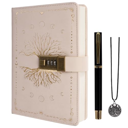 TIEFOSSI Dagbok med Lås, Livets Träd Vintage Dagbok med Lås för Kvinnor och Män, A5 Påfyllningsbar Anteckningsbok för Skrivande, 224 Numrerade Sidor