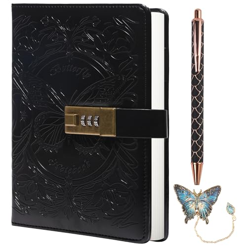 TIEFOSSI Dagbok med Lås för Kvinnor och Flickor, Linjerad Dagbok med Lås, Journal med Fjärilsmotiv, Penna och Bokmärke
