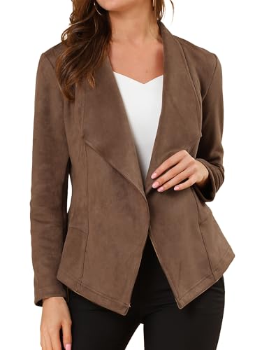 TOSHIKII Kavaj i mocka för kvinnor, , läder, blazer, jacka för höst, vinter, vardaglig jacka i fuskmocka, 1, S