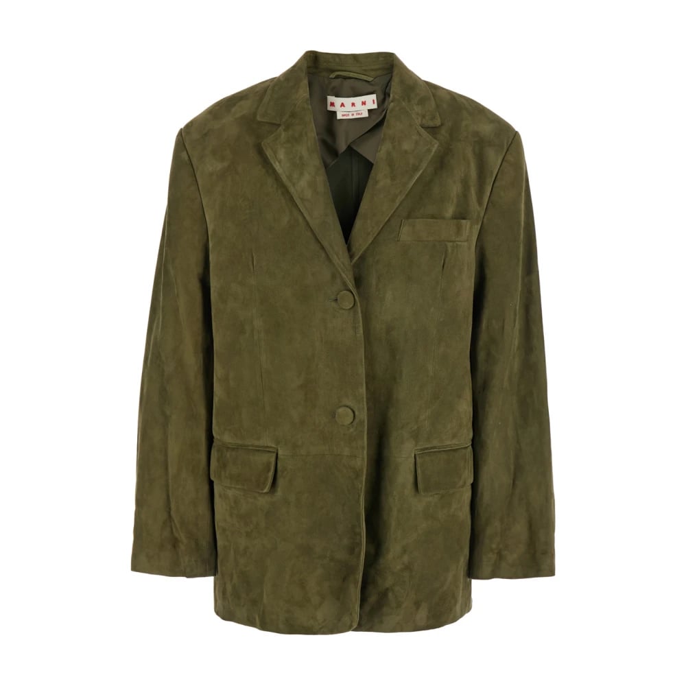 Marni, Jackor , Dam, S, Mocka, Grön enkelknäppt jacka med inverterad slag