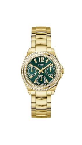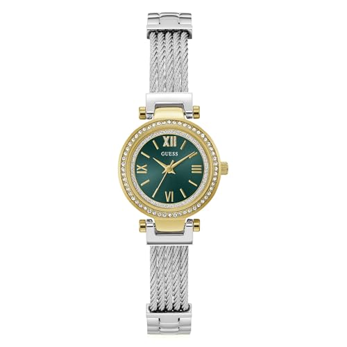 Guess Damarmbandsur GW0931L8 pixie, 25 mm rostfritt stål tvåfärgad PVD, grön urtavla, kvarts, mineralglas, zirkon, 3 ATM, länkarmband
