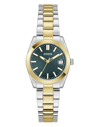 Guess Damarmbandsur Alice med datumvisning, tvåfärgat rostfritt stålarmband, mineralglas, grön urtavla, 3 bar, boettdiameter: 32 mm, GW0934L3