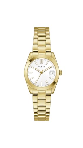 Guess Damarmbandsur Alice med datumvisning, guldfärgat rostfritt stål armband, mineralglas, vit urtavla, 3 bar, boettdiameter: 32 mm, GW0934L2