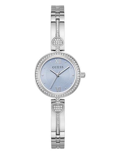 Guess Lovey, damarmbandsur, kvarts analog, rostfritt stål, 27 mm, rostfritt stål armband, silver, 3 bar, urtavlans färg: blå, GW0655L4