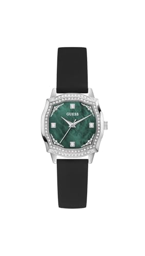 Guess Damarmbandsur LIV med zirkon, svart silikonarmband, mineralglas, grön urtavla, 3 bar, husdiameter: 32 mm, GW0932L1