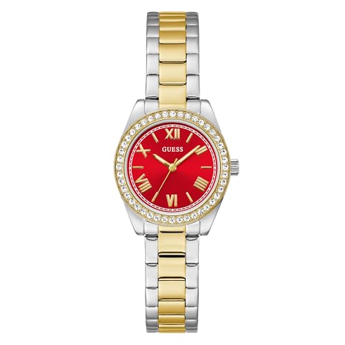 Guess Damarmbandsur MINI Luna, tvåfärgat rostfritt stålarmband, mineralglas, röd urtavla, 3 bar, husdiameter: 30 mm, GW0841L8