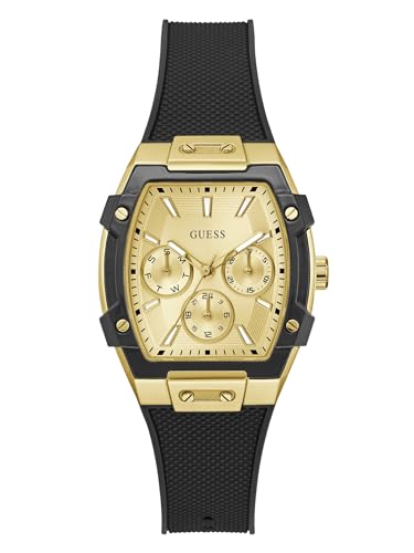 Guess Phoenix damarmbandsur med datumvisning, svart silikonarmband, mineralglas, guldfärgad urtavla, 3 bar, boettdiameter: 35 mm, GW0945L2