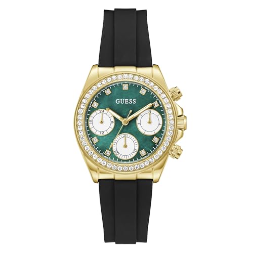 Guess Victoria, damarmbandsur, kvarts analog, rostfritt stål, 36 mm, silikonarmband, svart, 5 bar, urtavlans färg: grön, datumvisning, GW1038L2