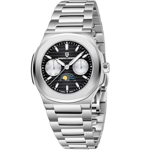 Pagani Design Damarmbandsur med flera funktioner, kronograf, månfas, armbandsur PD1786, Pd1786-svart-cj, Klassisk