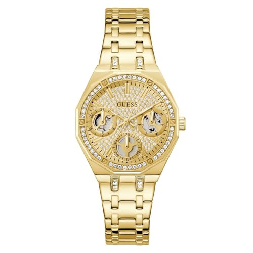 Guess Damarmbandsur Roxy med zirkon, guldfärgat rostfritt stål armband, mineralglas, guldfärgad urtavla, 3 bar, boettdiameter: 36 mm, GW0987L2