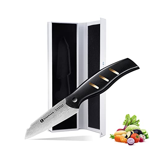 OREMAKE 3,5-tums kökskniv Damaskus fårhund kökskniv med G10-handtag, liten vass grönsaks- och fruktskalningskniv, universalkniv, ergonomiskt handtag
