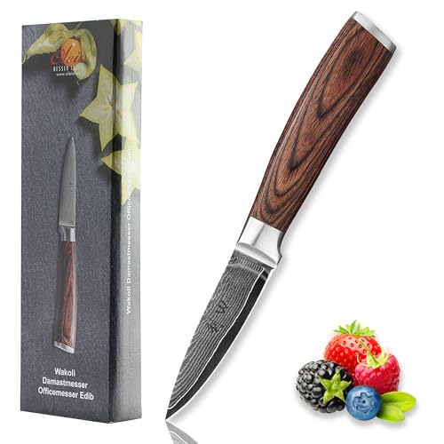 Wakoli EDIB Damaskus skalkniv kontorskniv | Vass 8 cm klinga i 67 lager damaskusstål med VG10-kärna och handtag i pakkaträ | Professionell kökskniv i elegant presentförpackning