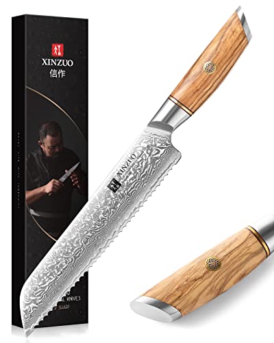 XINZUO Brödkniv för damaskstål, 21,2 cm, damaskpulverstål, 73 lager, kökskniv, professionell vass Damaskus, kockkniv med ergonomiskt olivträhandtag, Lan Series