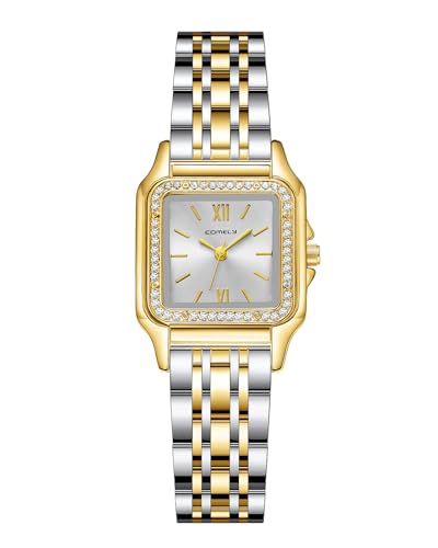 CIVO damklocka silver/guld armbandsur dam analog vattentät rostfritt stål rektangulär klocka dam eleganta klockor presenter till äkta mor, #guld/silver, Standard, Armband