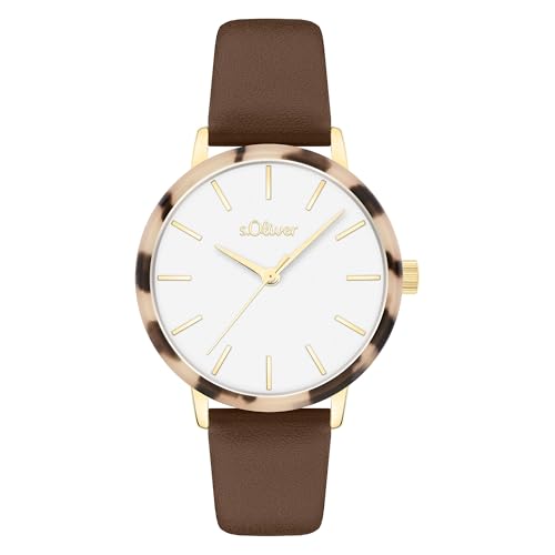 s.Oliver damklocka – rund – guld – 30 mm – elegant damklocka av metall med kvartsrörelse – 3 atm vattentät – reptålig