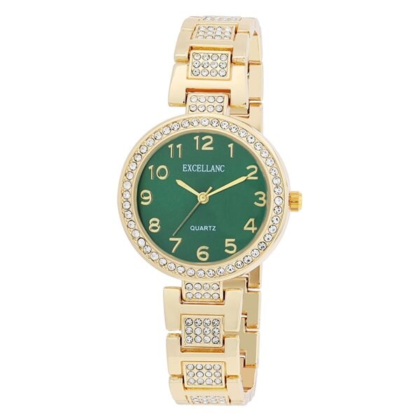 Excellanc Damklocka med metallänk / Armbandsur - Guld/Grön