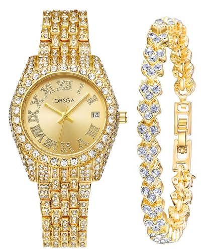 CIVO armbandsur dam rostfritt stål analog vattentät klassisk elegant klänning damklocka kvarts minimalistisk lysande datum presentset klocka för kvinnor, Guld, Standard, Armband