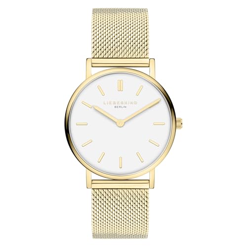 Liebekinder Berlin damklocka – rund – guld – 37 mm – elegant damklocka i polerat rostfritt stål med kvartsurverk – analog armbandsur – 5 ATM vattentät – reptålig