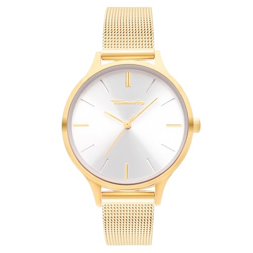 Tamaris damklocka – rund – guld – 34 mm – elegant damklocka i metall med kvartsurverk – analog armbandsur – 3 atm vattentät – reptålig