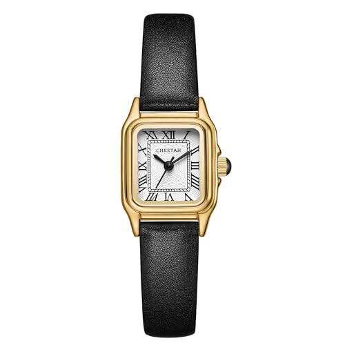 CHEETAH Små damklockor för kvinnor analog kvarts damklocka med vintage armband, rektangulärt fodral romersk urtavla digital vattentät armbandsur för kvinnor flickor, L/Svart/Guld/Vit, vintage