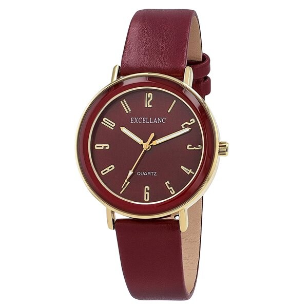Excellanc Damklocka med konstläderrem / Armbandsklocka / Armbandsur – Vinröd/guld