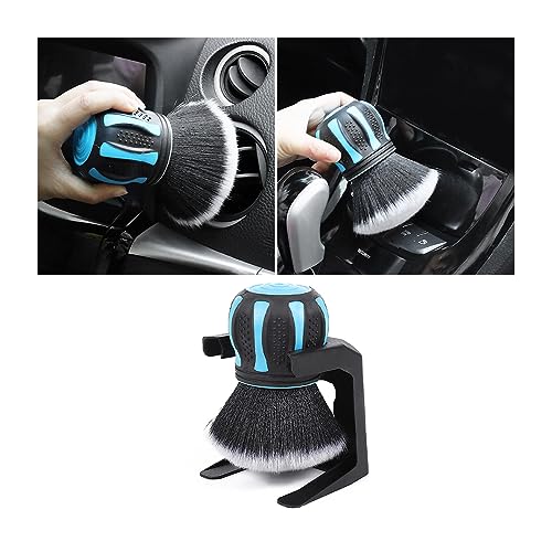 AUCELI Bildetaljborste, ultramjuk automatisk interiör dammborste med förvaringsställ, XL syntetisk borste för bilar, rengöringsverktyg, universell, täcker stora ytor inuti eller utanför fordon (blå