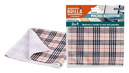 La Briantina Scottish dammduk av mikrofiber, dubbel åtgärd, damm- och glänsande, för skärmar och silver, återanvändbara, 40 x 40 cm
