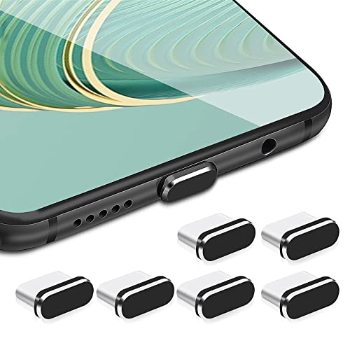 Cobee typ C dammplugg-set, 6 delar aluminiumlegering USB C dammskydd lock laddningsport skydd typ-C metall dammskyddspropp för smartphone bärbar dator (svart)