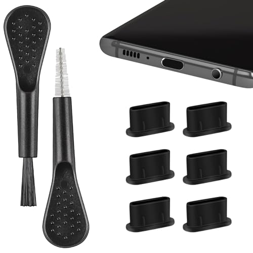 Lilbitty 6-pack USB-C dammskydd, med två små rengöringsborstar, silikonskyddskåpa för USB 3.1 Type-C, universellt för Samsung, Google, Xiaomi och mer
