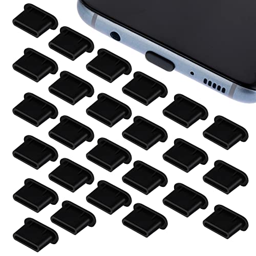Cobee typ C-port dammpluggar, USB C dammskydd lock telefon typ-C anti-damm laddningsport plugg silikon dammskydd med avtagbart lim kompatibel med bärbara smartphones (6 st, svart)
