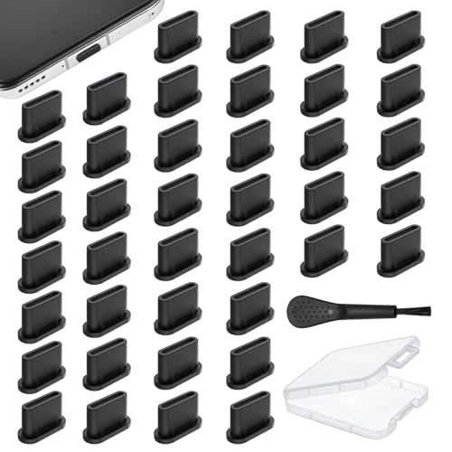 VINEST 40 stycken USB C dammskydd pluggar med rengöringsborste, silikon mobiltelefon USB C skydd med förvaringslåda, mobiltelefon tillbehör för iPhone 15 Pro och laddningsuttag skydd