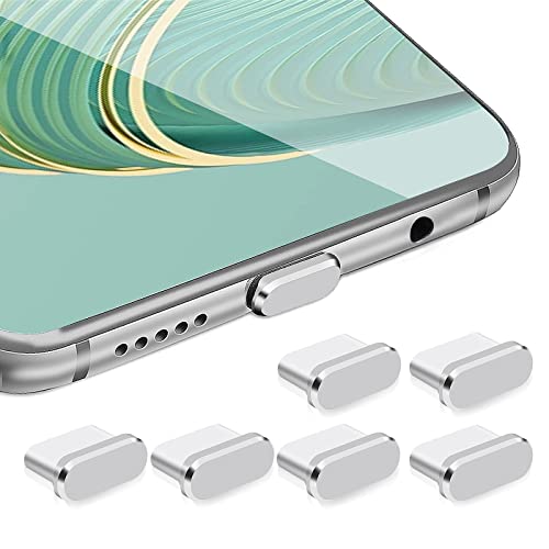 Cobee USB C dammplugg-set, 6 st typ C-port pluggar dammskydd lock laddningsport skydd USB C-portlock skydd typ C metall dammskyddspropp för smartphone bärbar dator (silver)