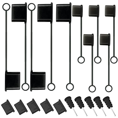 5 st USB C-kabelskydd + 5 USB-portskyddskåpa + 5 USB C-dammproppar lock + 5 dammskydd för 3,5 mm hörlursuttag, silikon, anti-damm plugglock för laddningsport typ C enheter