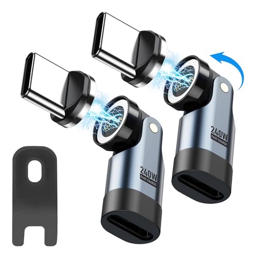 AXFEE 9 stift 240 W typ C snabbladdande magnetadapter, [2 stycken] 540° USB C till USB C, magnetisk kontakt, ersättningskontakt telefon dammskydd kontakt för magnetisk USB-laddningskabel