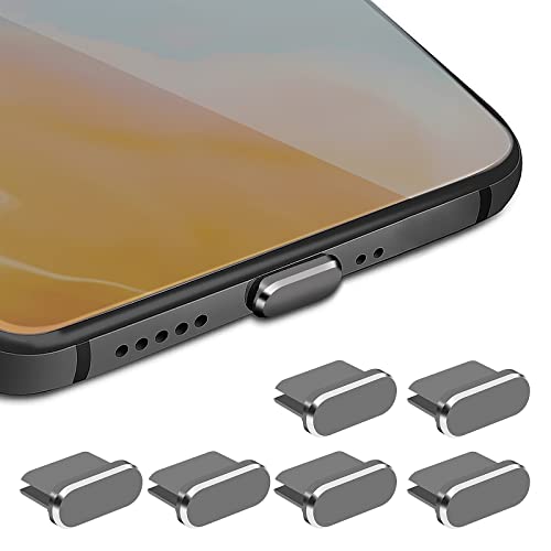 Cobee typ C dammplugg-set, 6 delar aluminiumlegering USB C dammskydd lock laddningsport skydd typ-C metall dammskyddspropp för smartphone bärbar dator (grå)
