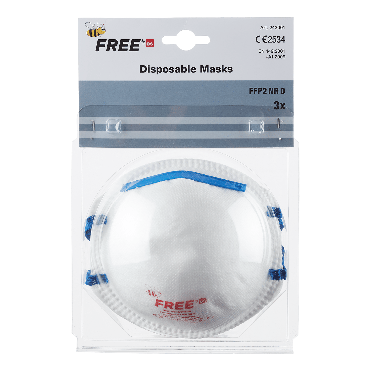 Dammskyddsmask OS FFP2 NR D paket med 3 st.