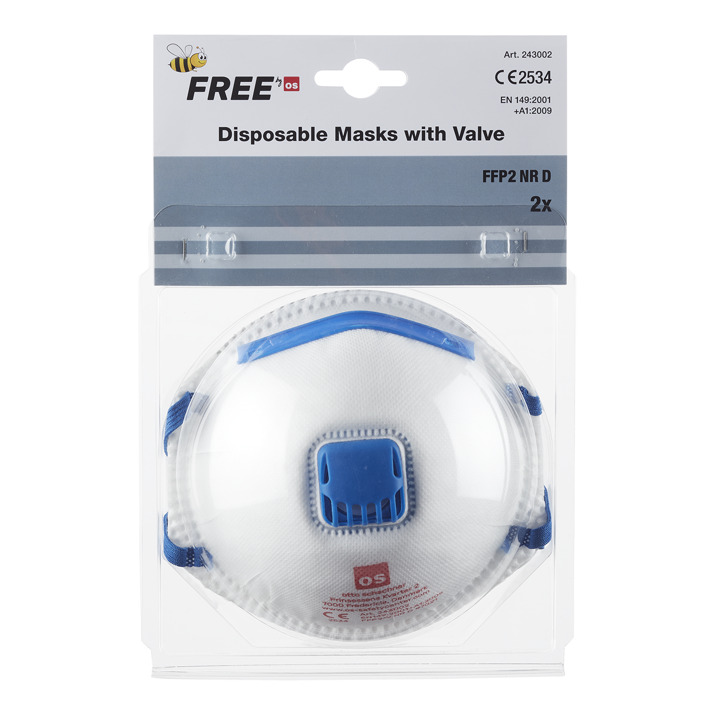 Dammskyddsmask OS FFP2-V NR D paket med 2 st.