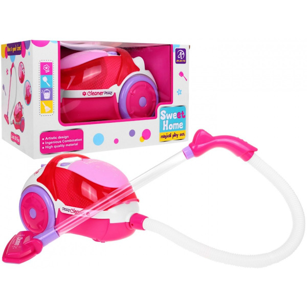Rosa dammsugare för barn 3+ ljus- och ljudeffekter + utdragbar funktion + frigolitbollar