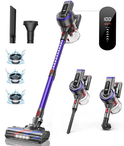 BuTure Batteridammsugare JR400, dammsugare trådlös 38 000Pa/450 W, upp till 55 MIN, trådlös dammsugare med pekskärm, avtagbart batteri, LED elektrisk borste, vägghållare, djurhår