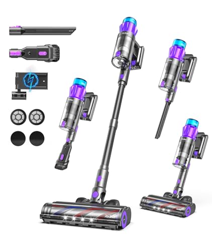 Lubluelu sladdlös dammsugare | Trådlös dammsugare med stark sugkraft | upp till 50 min drifttid | 120 000 varv/min | fristående batteridammsugare för djurhår, mattor och hårda golv, svart-lila