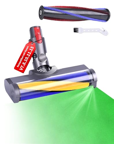 2-i-1-borste kompatibel med Dyson dammsugare V7, V8, V10, V11, V15, reservdel tillbehör golvborste med direktdrift och LED-grönt ljus, lampor för hårda golv | flexibel rotation