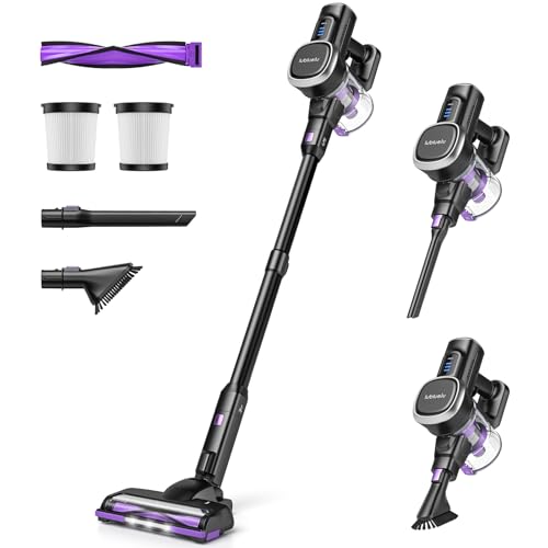 Lubluelu sladdlös dammsugare | Trådlös dammsugare med stark sugkraft | upp till 50 min drifttid | 120 000 varv/min | fristående batteridammsugare för djurhår, mattor och hårda golv, svart-lila