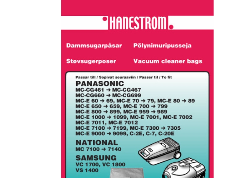 HANESTRÖM Dammsugarpåsar PANASONIC MC-E 940 serie