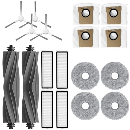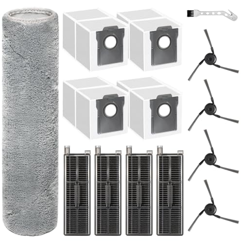 KiimSin Reservdel tillbehör för Mova Z5/Z5 Pro/Z50 Ultra/Z50 dammsugarrobot, 1 huvudborste, 4 dammpåsar, 4 filter, 4 sidoborstar