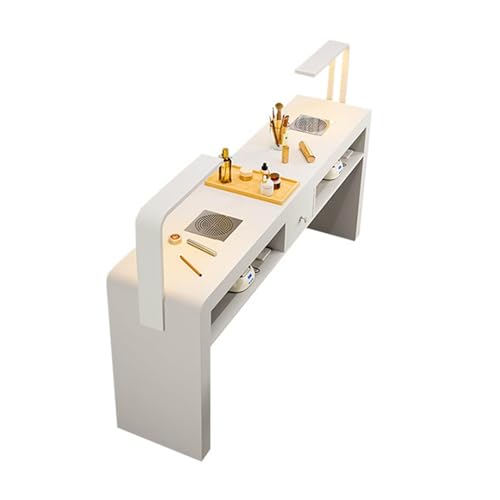 Nagelbord, hemsalong spa-nagelbord med dammuppsamlare och LED-ljus, nagelskönhet nagelbord arbetsstation med förvaringslåda